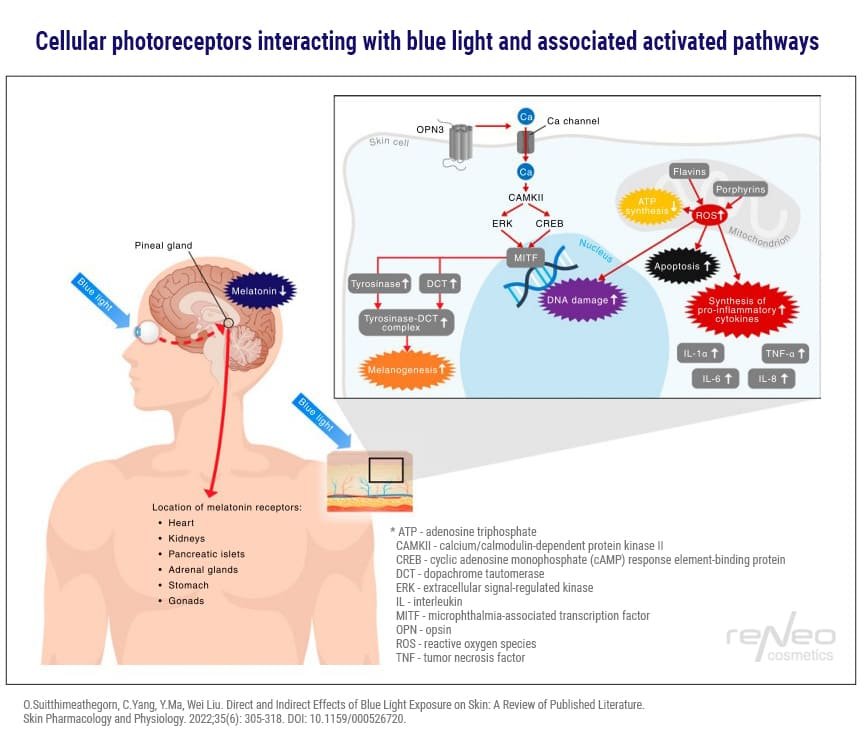 - O.Suitthimeathegorn, C.Yang, Y.Ma, Wei Liu. Direct and Indirect Effects of Blue Light Exposure on Skin: A Review of Published Literature. Skin Pharmacology and Physiology. 2022;35(6): 305-318. DOI: 10.1159/000526720.