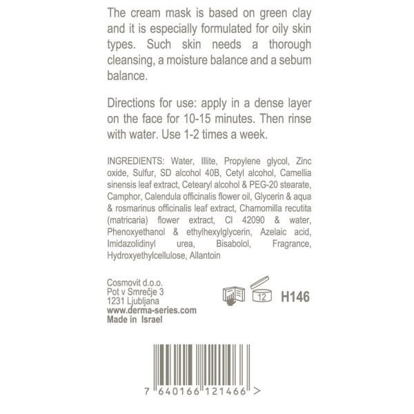 GREEN CLAY (ILLITE) is the most effective in the care of oily skin: it normalizes the sebum activity, reducing sebum secretion, has bactericidal properties and removes the inflammatory skin reaction, soothing it instantly. It contains a rich complex of necessary microelements, which contributes to the restoration of skin hydro-balance and normal metabolism. Green clay activates blood circulation, which stimulates the regeneration of skin cells.