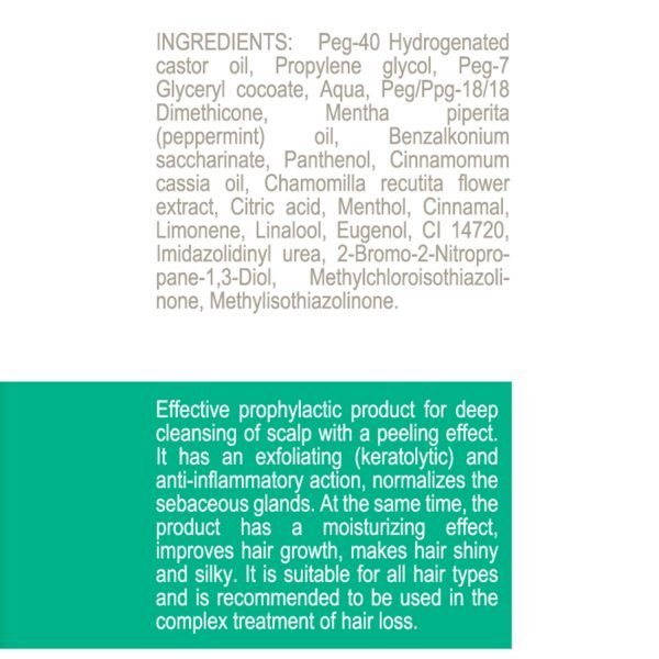Пилинг-гель для глубокого очищения кожи головы отшелушивает роговые клетки, нормализует дифференцировку кератиноцитов и регулирует функцию сальных желез. Средство деликатно очищает кожу, обладает антисептическими и противовоспалительными свойствами, подходит для самой чувствительной кожи.