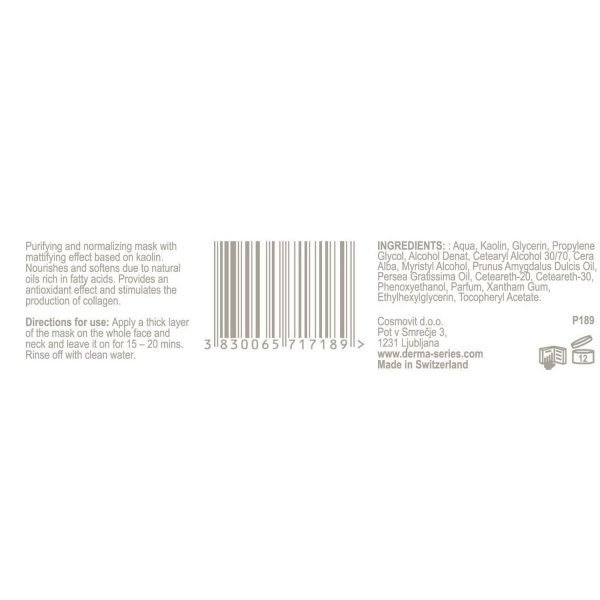Маска содержит каолин, который абсорбирует избыток кожного сала, очищая поры. Компоненты с высоким содержанием органического кремния поддерживают влагоудерживающую способность кожи и ее эластичность. Коктейль легких масел способствует восстановлению корнеобаланса кожи.