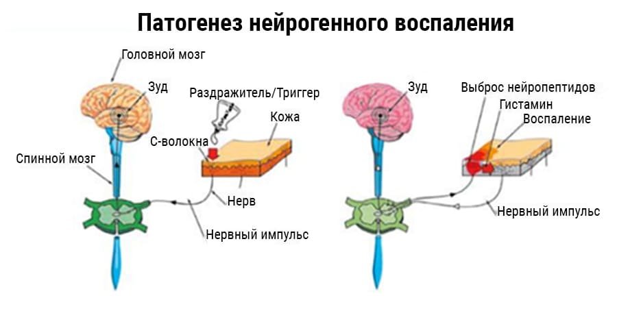 Патофизиология гиперчувствительности кожи все еще является предметом дискуссий ученых, исследования продолжаются. Есть аргументы в пользу невропатической боли/зуда как фактора чувствительной кожи, то есть чувствительность кожи может быть связана с нейронными механизмами.